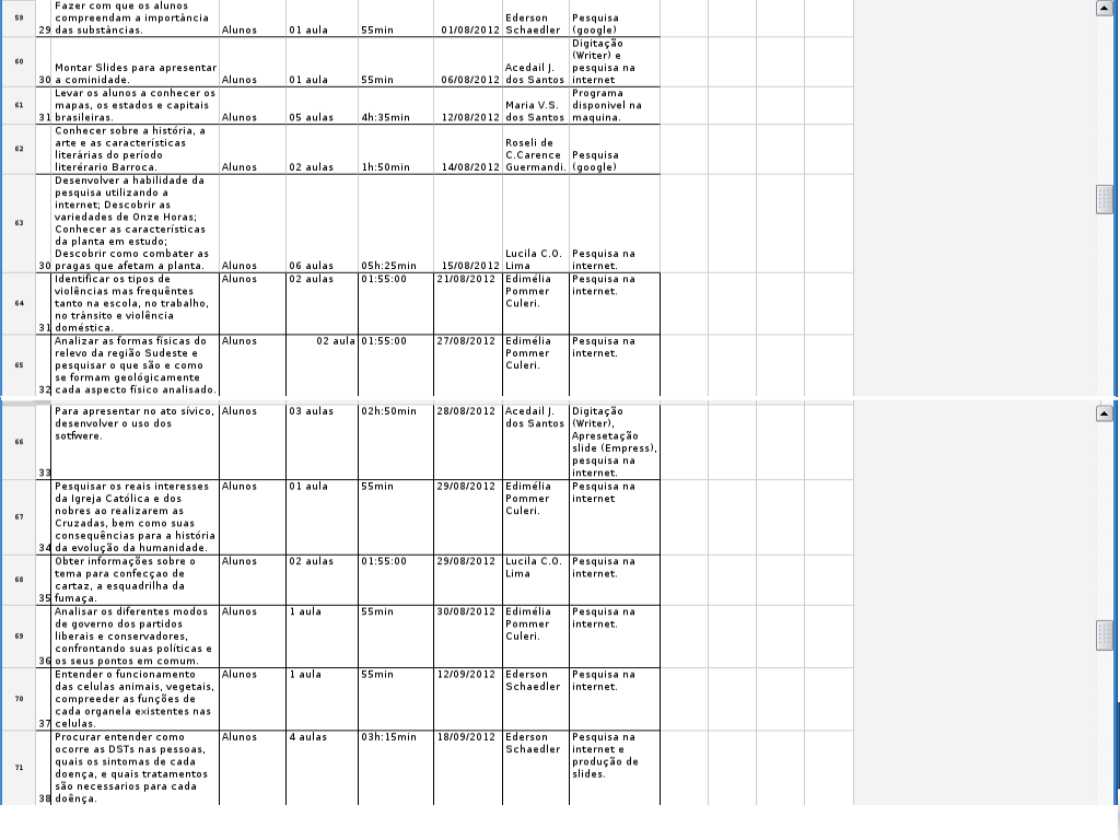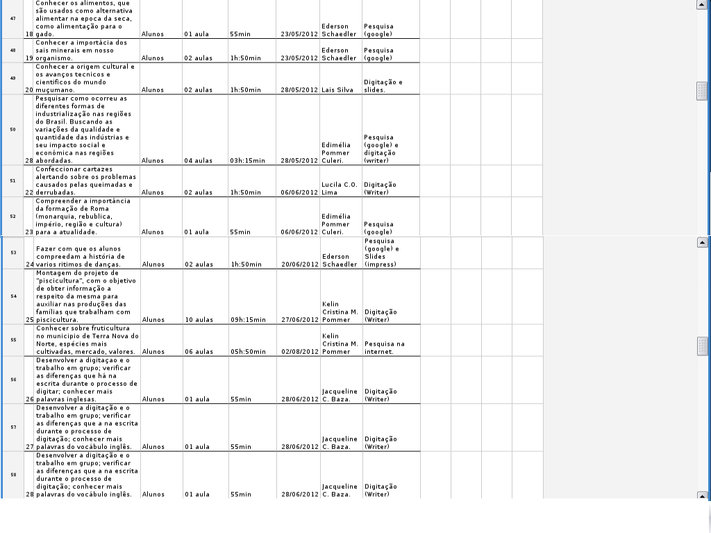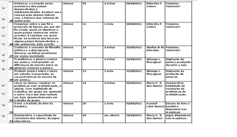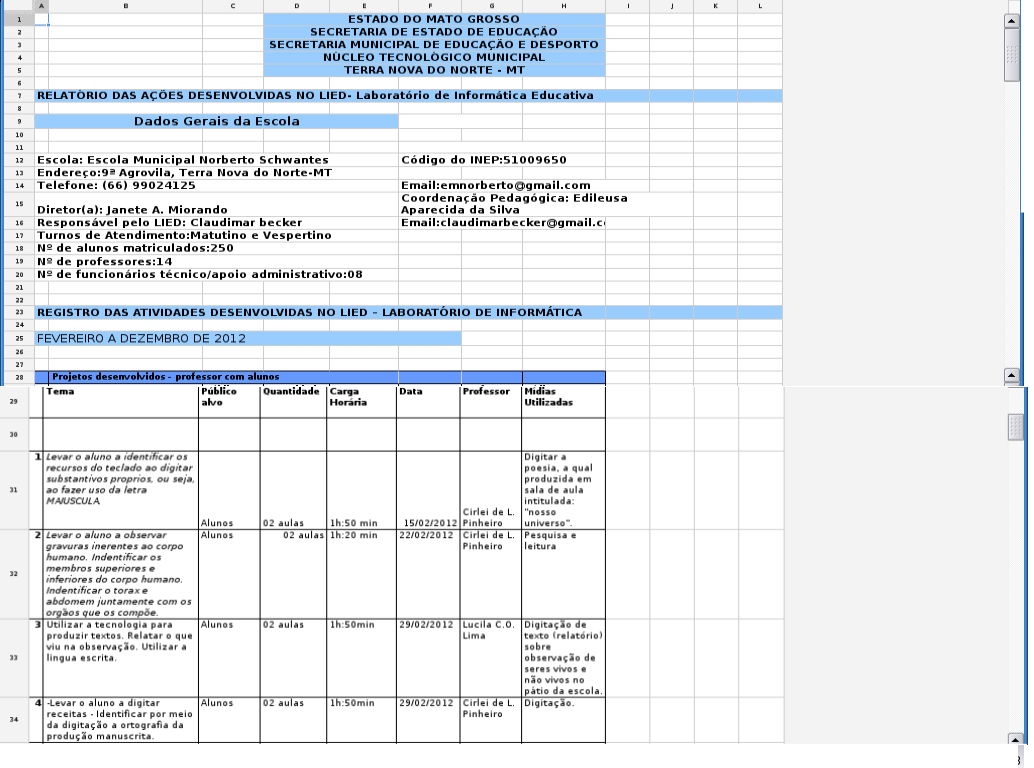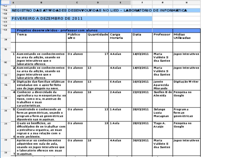 Todos os dados aqui citados são postados também na planilha do Google-Doc.Planilha/Relatório - uso do LIED 2011